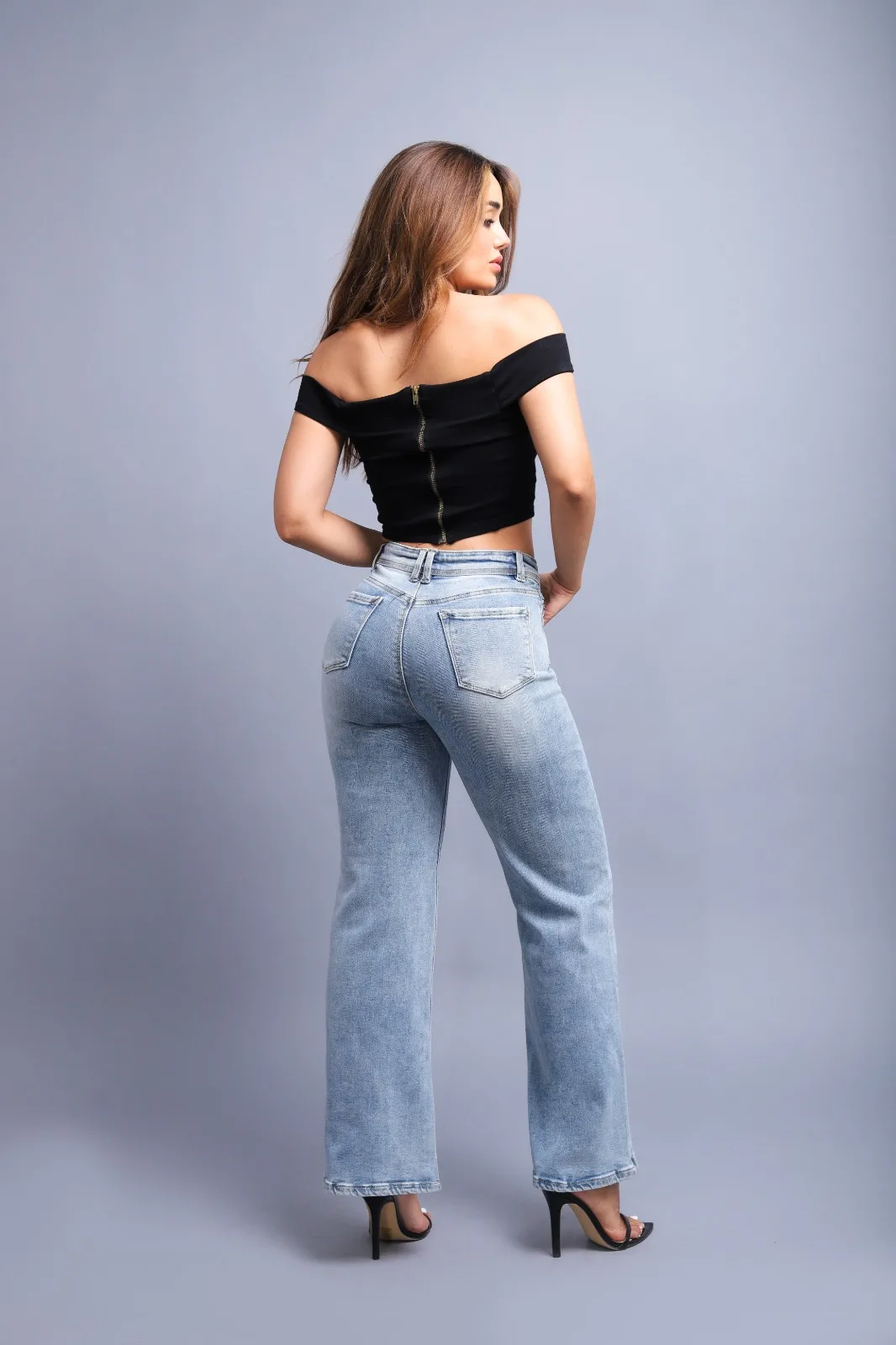 Tiro alto y silueta recta con ligero ensanche en el bajo, que estiliza la figura y aporta un aire elegante de inspiración náutica.