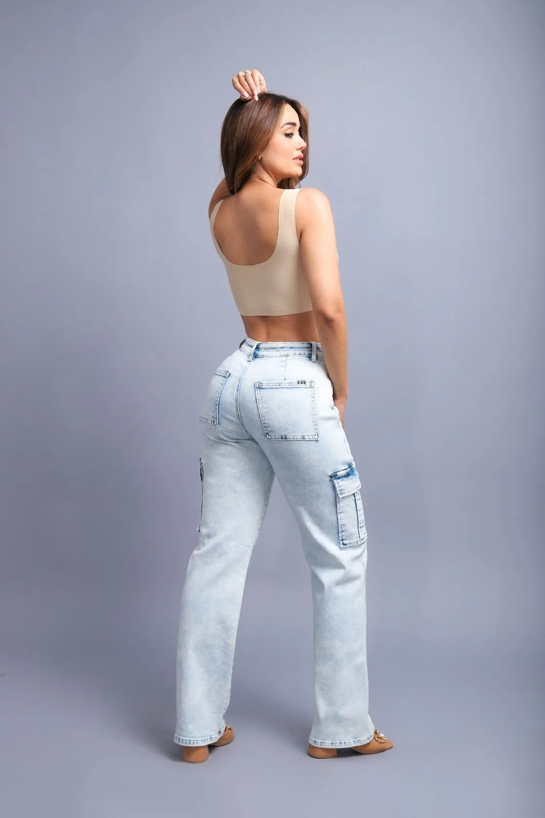 PANTALON DEOBLE FF WIDE LEG FIT CARGO AZUL CLARO B1-15